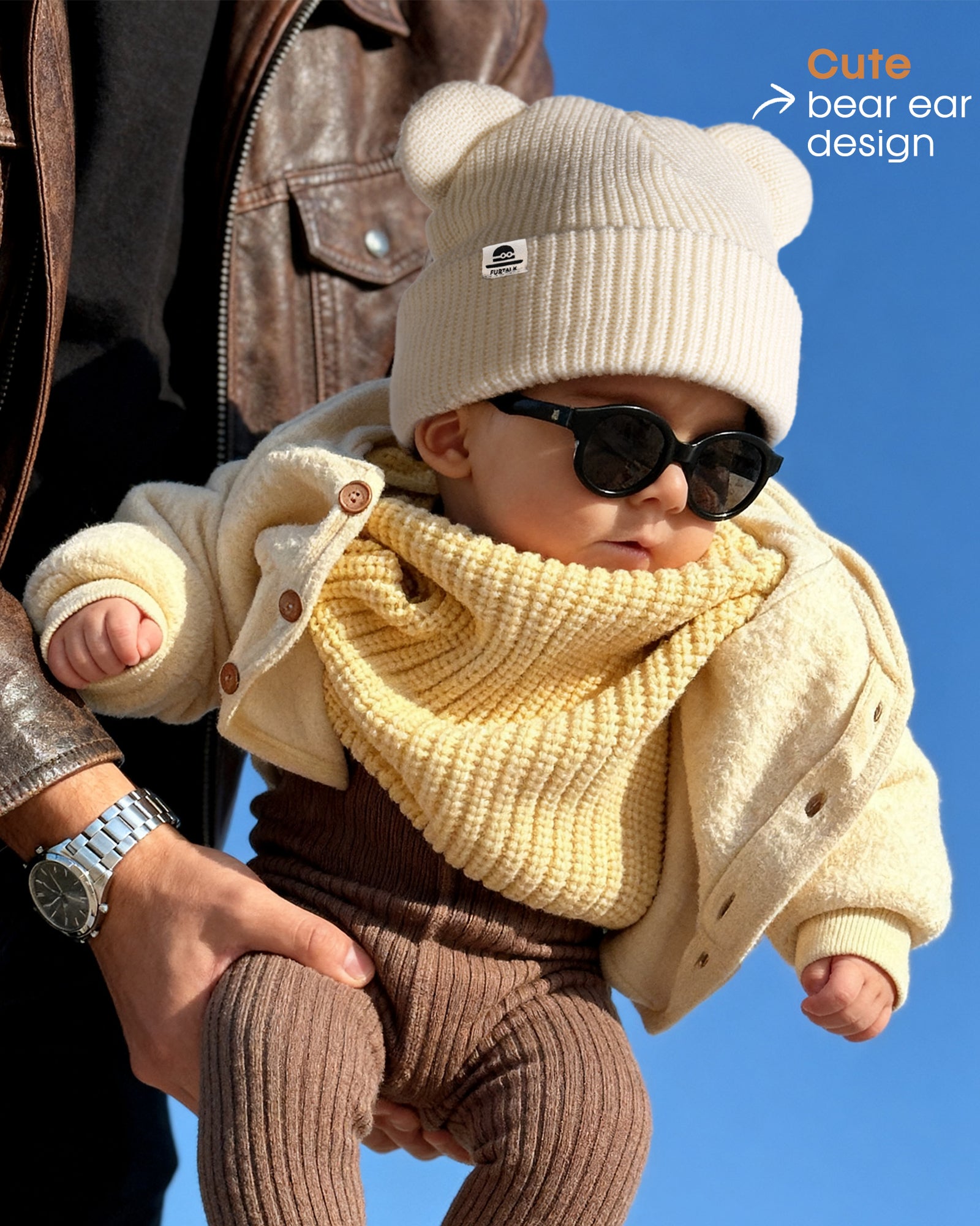 This baby beanie is made of high-quality acrylic,which is soft and cozy to keep your baby warm and comfortable during chilly days. The double-knit construction makes it thick enough to shield your baby's ears from the cool breeze, and it can cover your baby's ears against coldness.