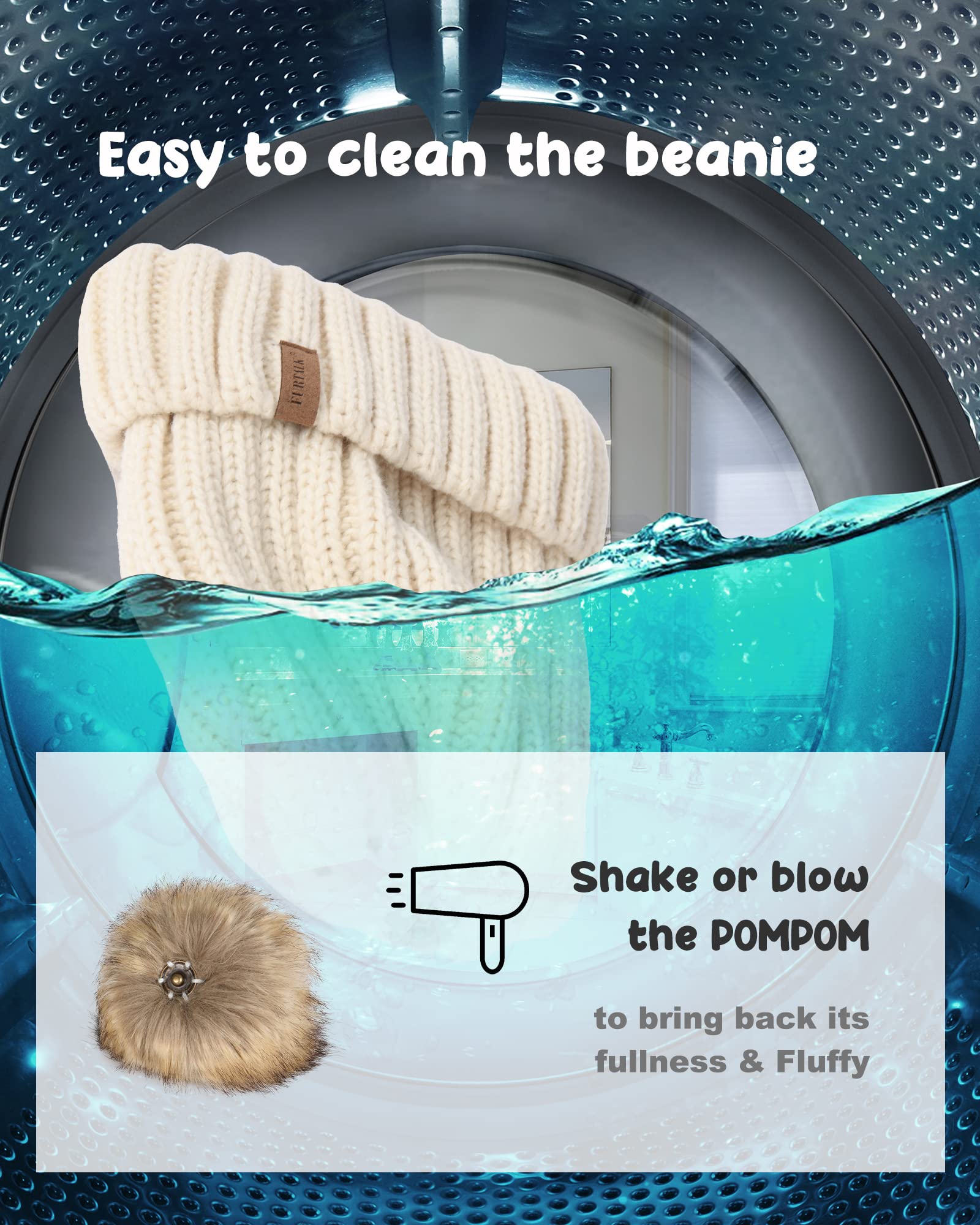 FURTALK Knitted Pom Beanie Hat Cotton Lined Pom Pom Cap