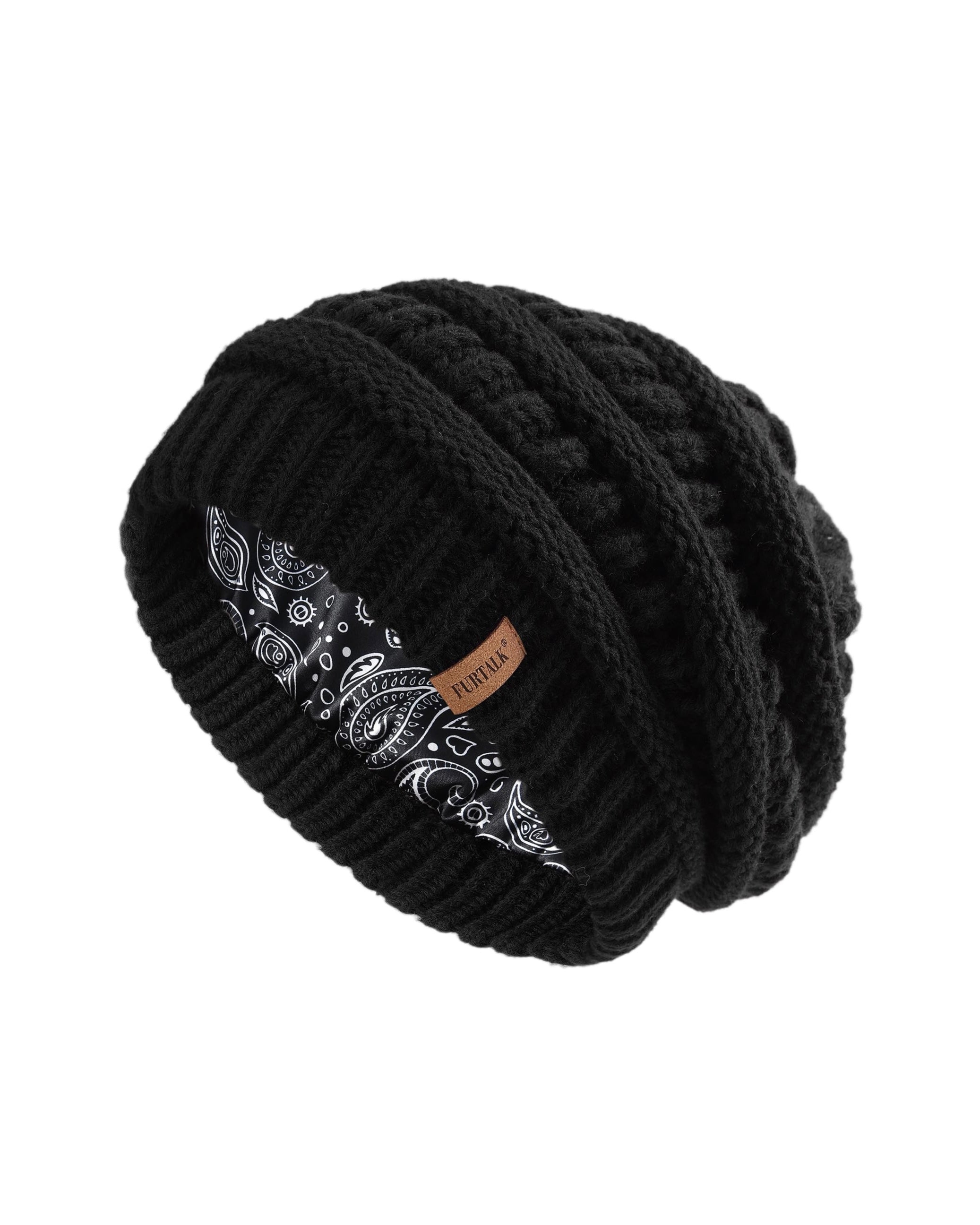 FURTALK Satin Lined Cable Knit Chunky Slouchy Beanie