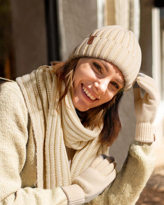 FURTALK Soft Fleece Lined Double Layer Beanie Knit Hat Touchscreen Gloves Scarf Set
