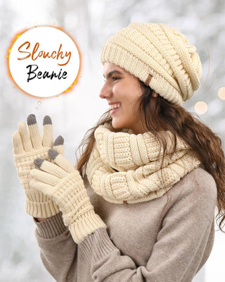 FURTALK Womens Winter Hat Gloves Scarf Set Gift Slouchy Beanie Touchscreen Gloves for Women