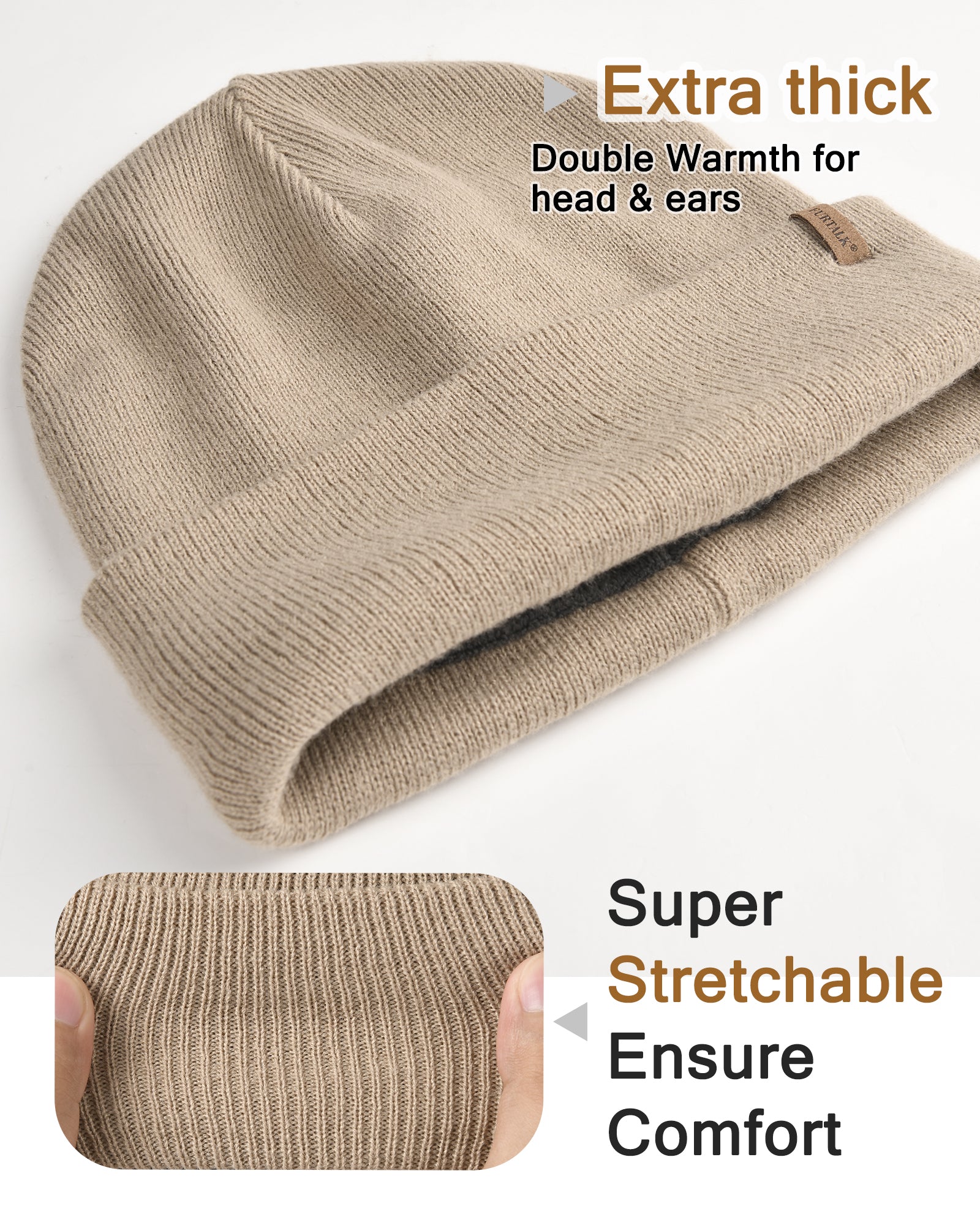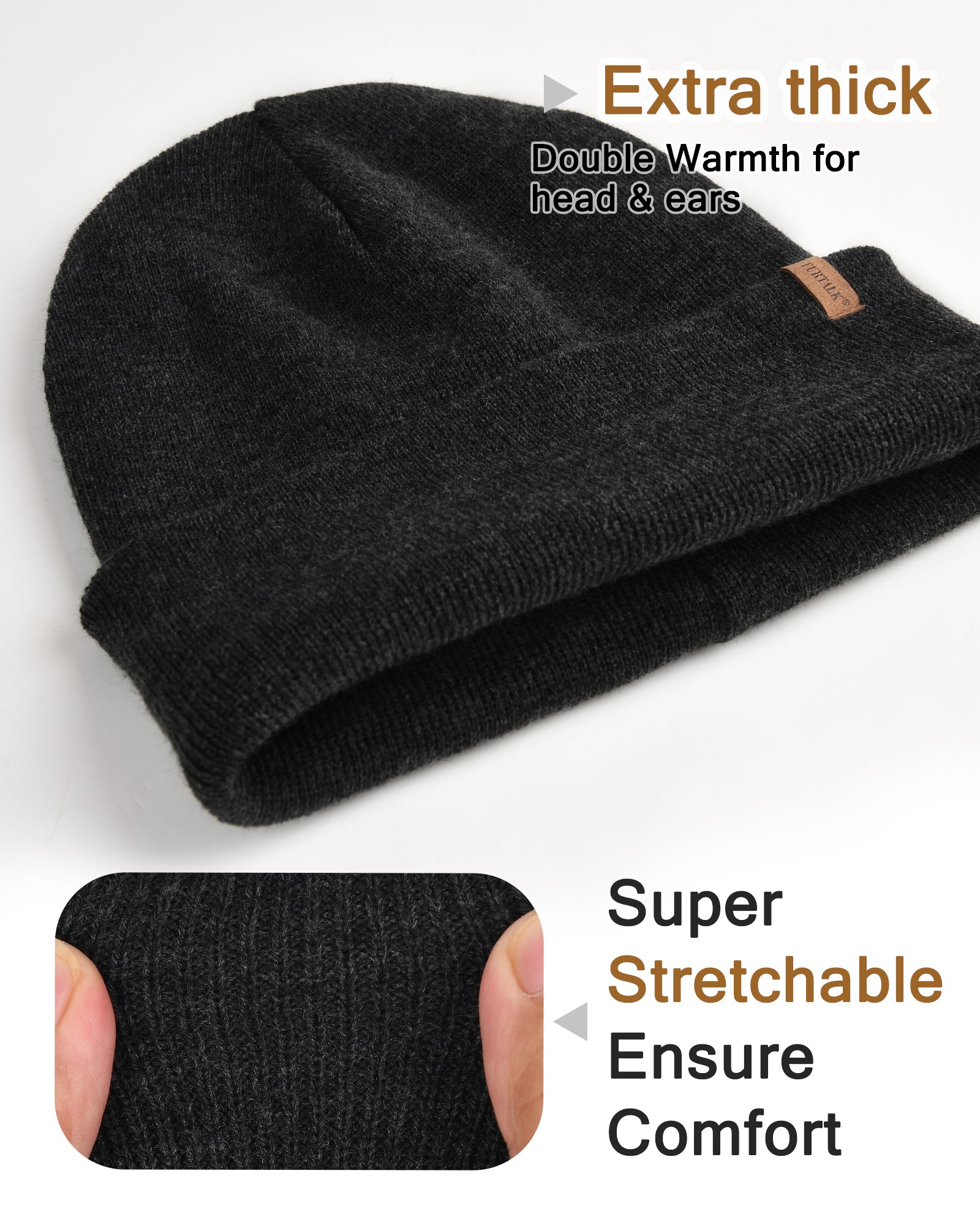 FURTALK Mens Beanie Fleece Lined Winter Hats Double Layered Stylish Knited Cuffed Plain Hat