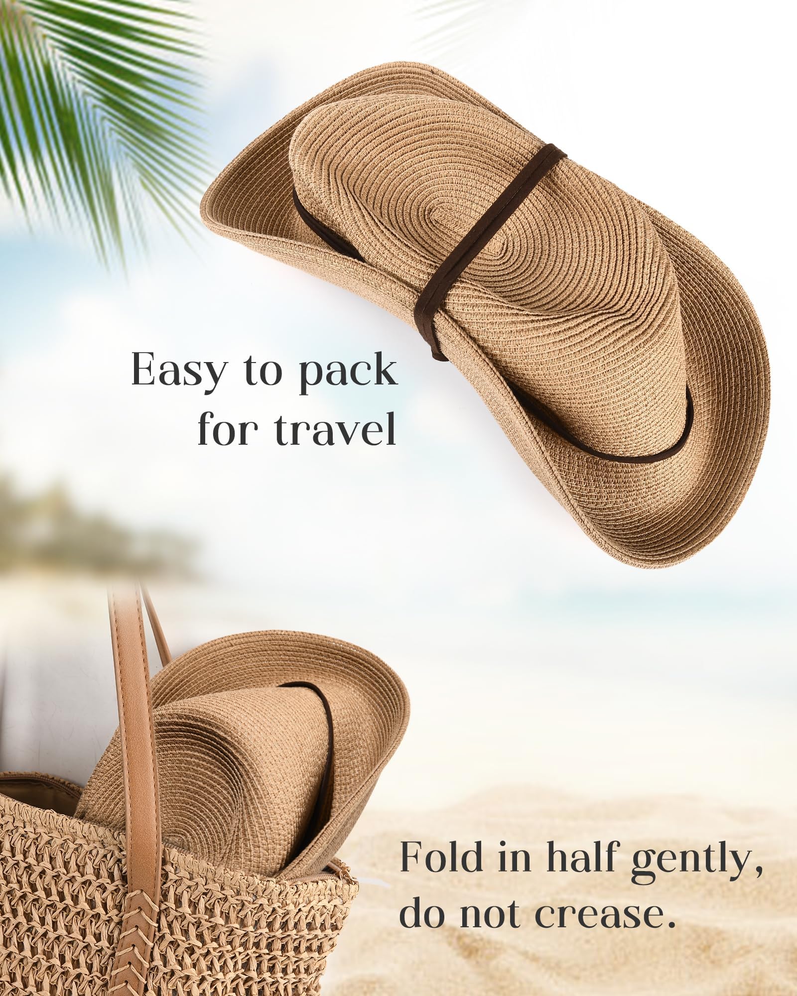 Material: Fedora Style Straw sun hat is made of breathable 90% Paper and 10% Polyester which makes it lightweight and flexible;Tight braiding ensures durability and shape