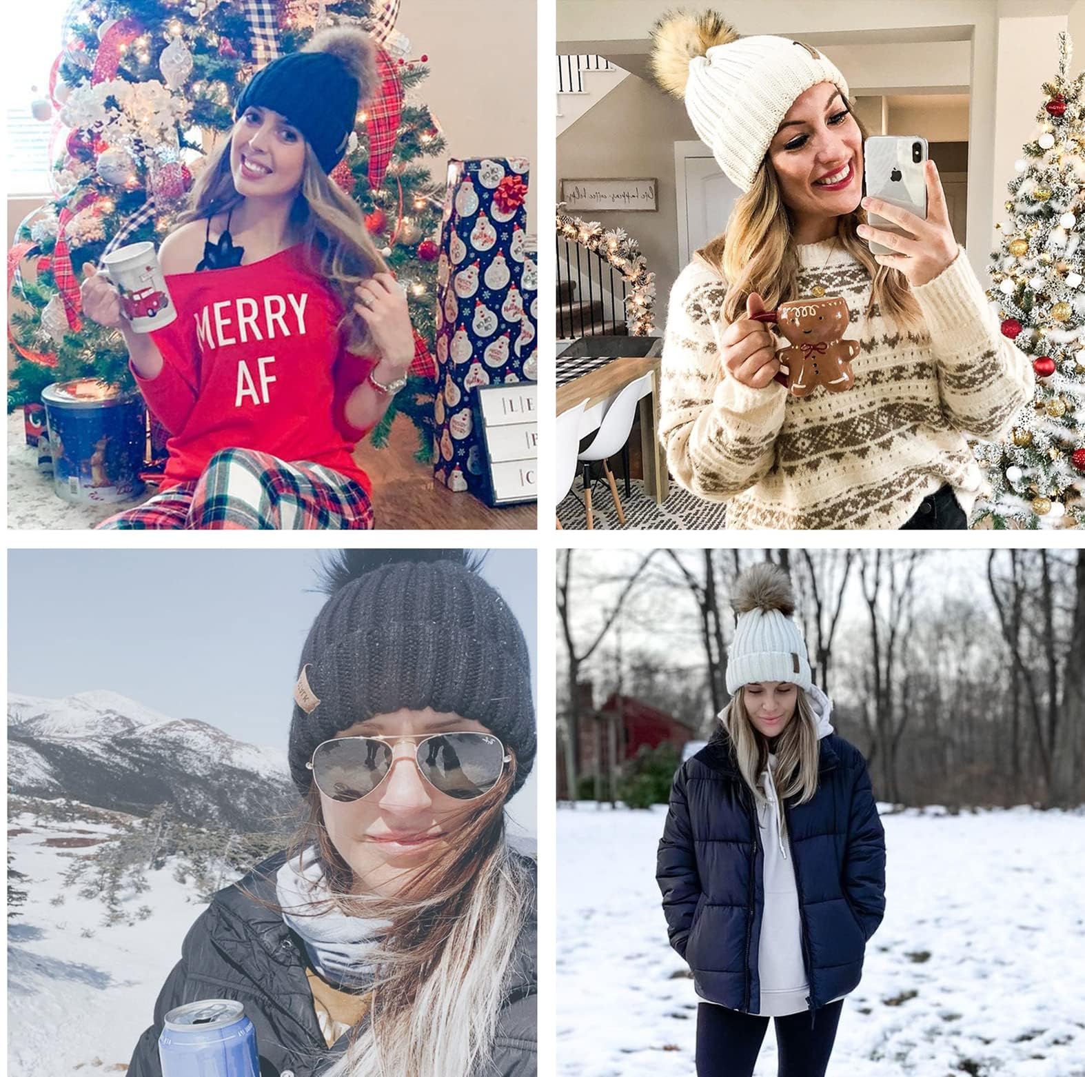 FURTALK Winter Knitted Beanie Hat with Pom Pom