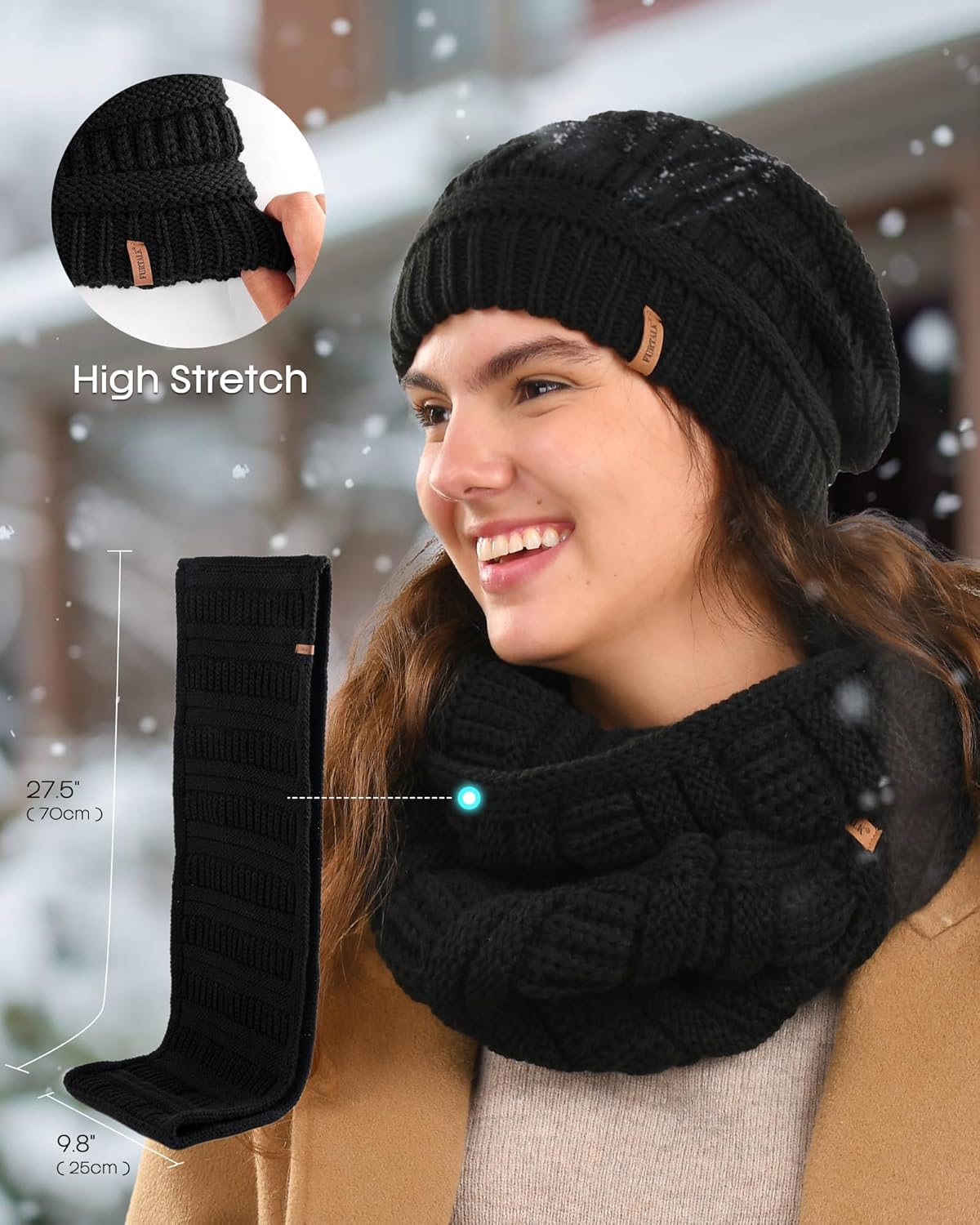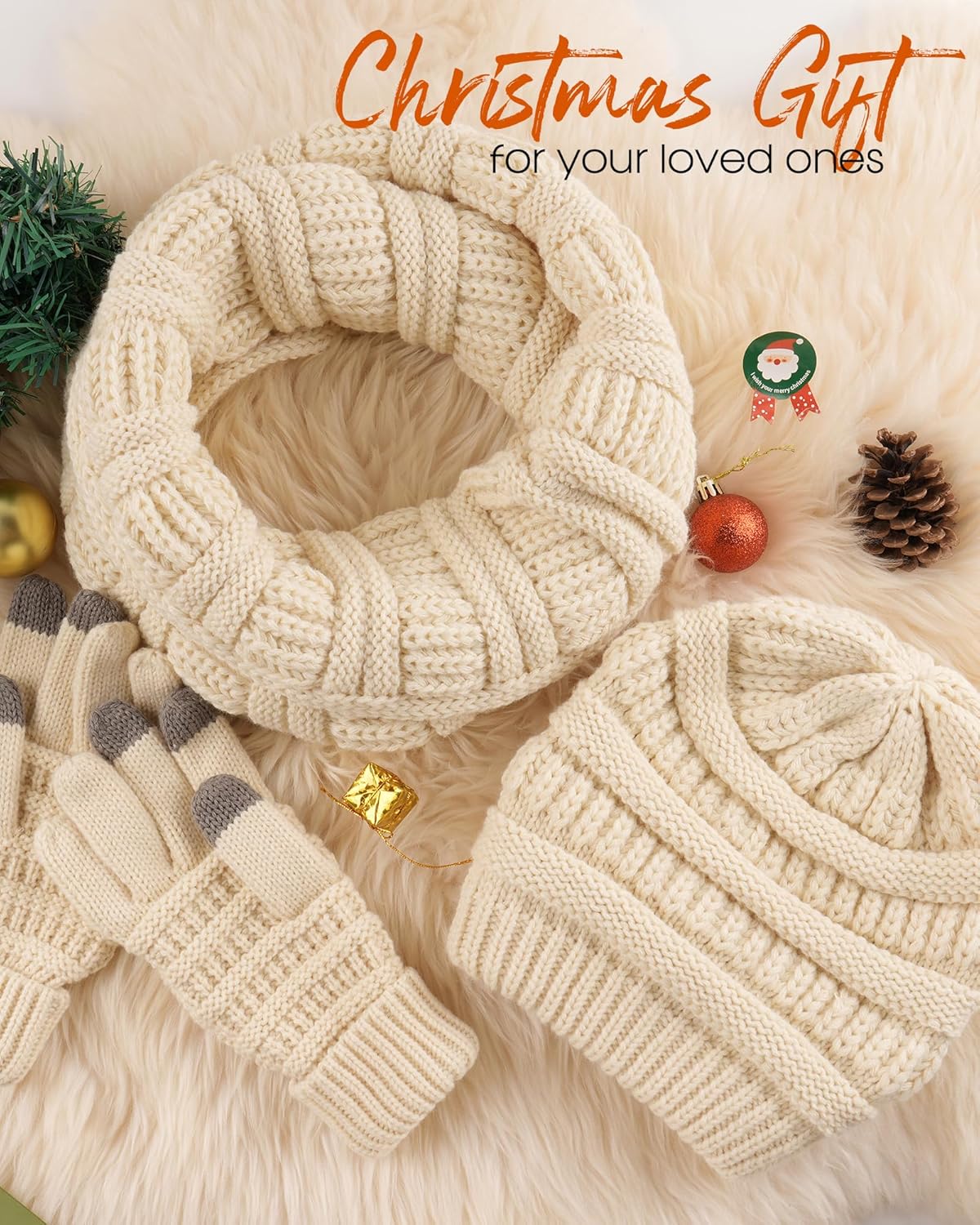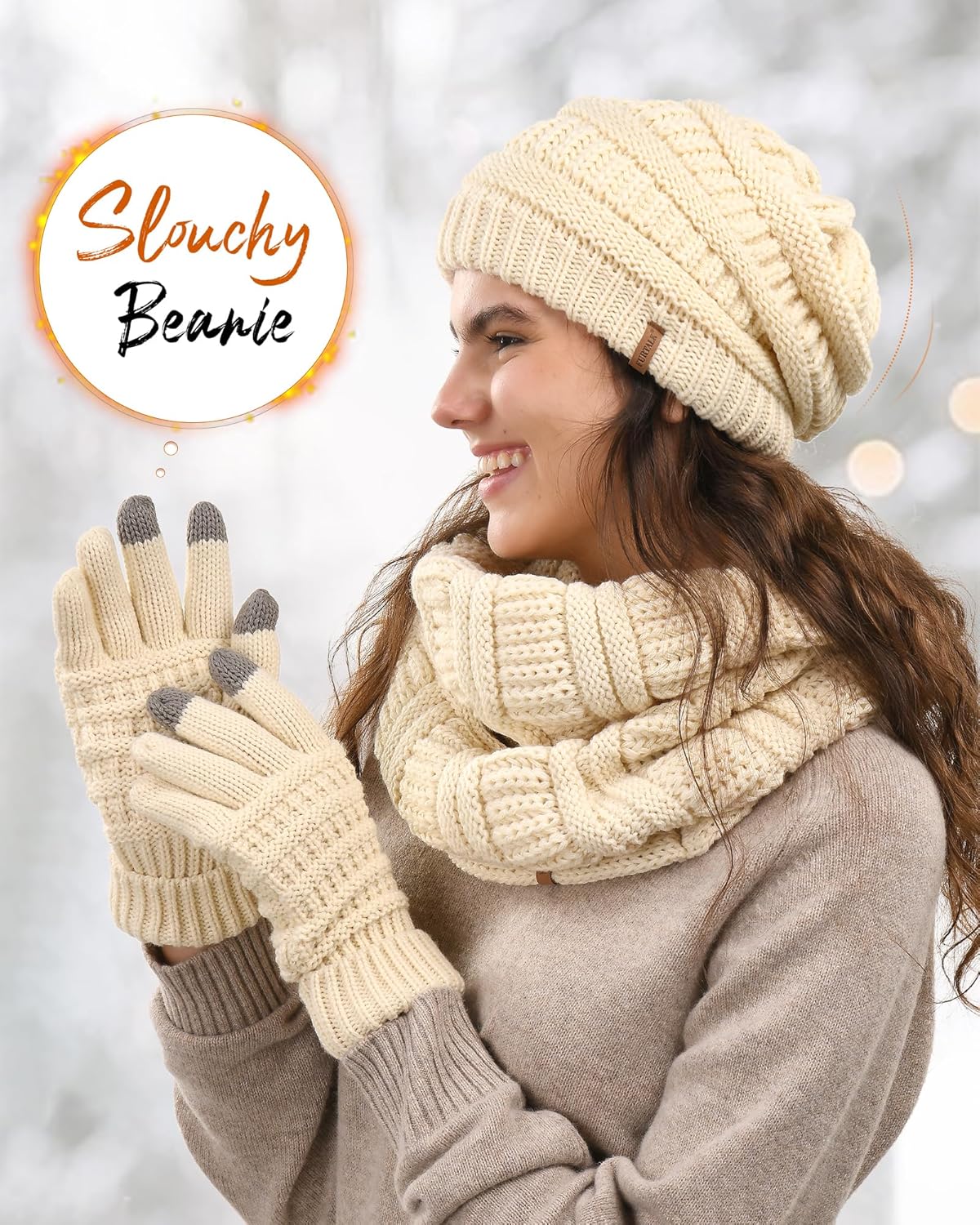 Excellent Quality Materials: This winter knit beanie hat scarf gloves set is made of soft and warm acrylic, and the knit is durable and resistant to wear and tear, ensuring long-lasting use. Slouchy winter hat is super warm to and keeps your ears warm, the gloves especially you can use them with typing your phone or your tablet. And the muffler is super warm to wear and keeps you really warm from the neck up